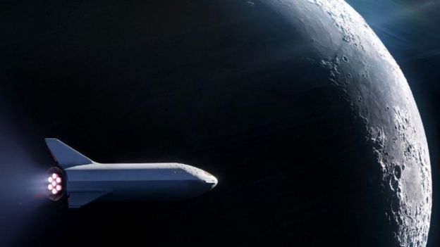 Modelo de la nave de SpaceX con que Elon Musk quiere hacer una misión a la Luna.